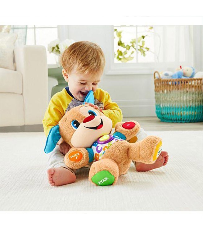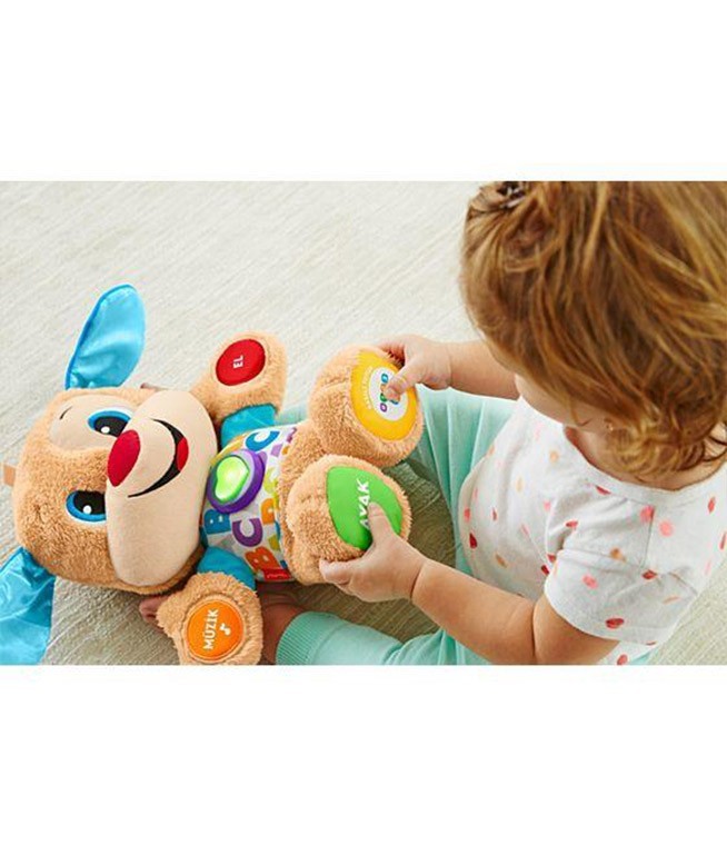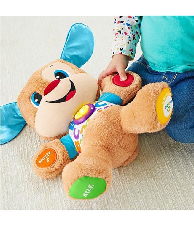 _x000D_Eğitici Köpekçik her zamanki gibi bebeğinizin dokunuşlarına eğlenceli şeyler söyleyerek cevap veren veya şarkılar çalan, yumuşak ve sevimli bir köpekçik. Üstelik artık, bebeğiniz büyüdükçe öğretici içeriği değişen Yaşa göre gelişim teknolojisine de sahip! Her bebek farklı bir hızda büyüyüp geliştiği için, Yaşa göre gelişim teknolojisi size bebeğiniz için en uygun olan aşamayı seçme imkanı sunar. Bu üç gelişim aşaması içerisinde farklı gelişim aşamalarına uygun şarkılar, cümleler ve sesler bulunur. Eğitici Köpekçiğin ışıklı kalbinin ışıkları müziğin ritmine uygun olarak yanıp söner.